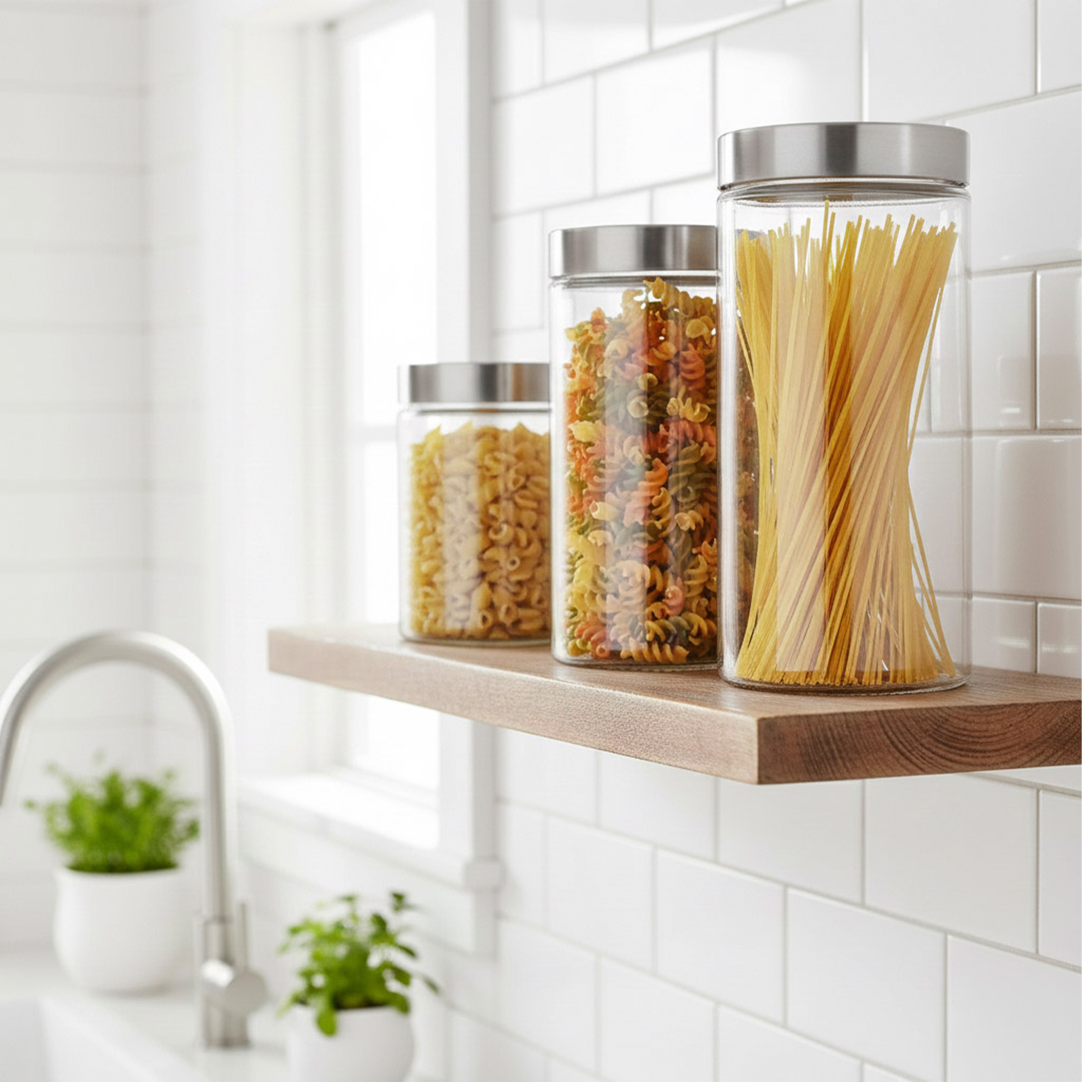 Nouvelle Cuisine Frasco de Vidrio Redondo 19 cm con Tapa Acero A Rosca