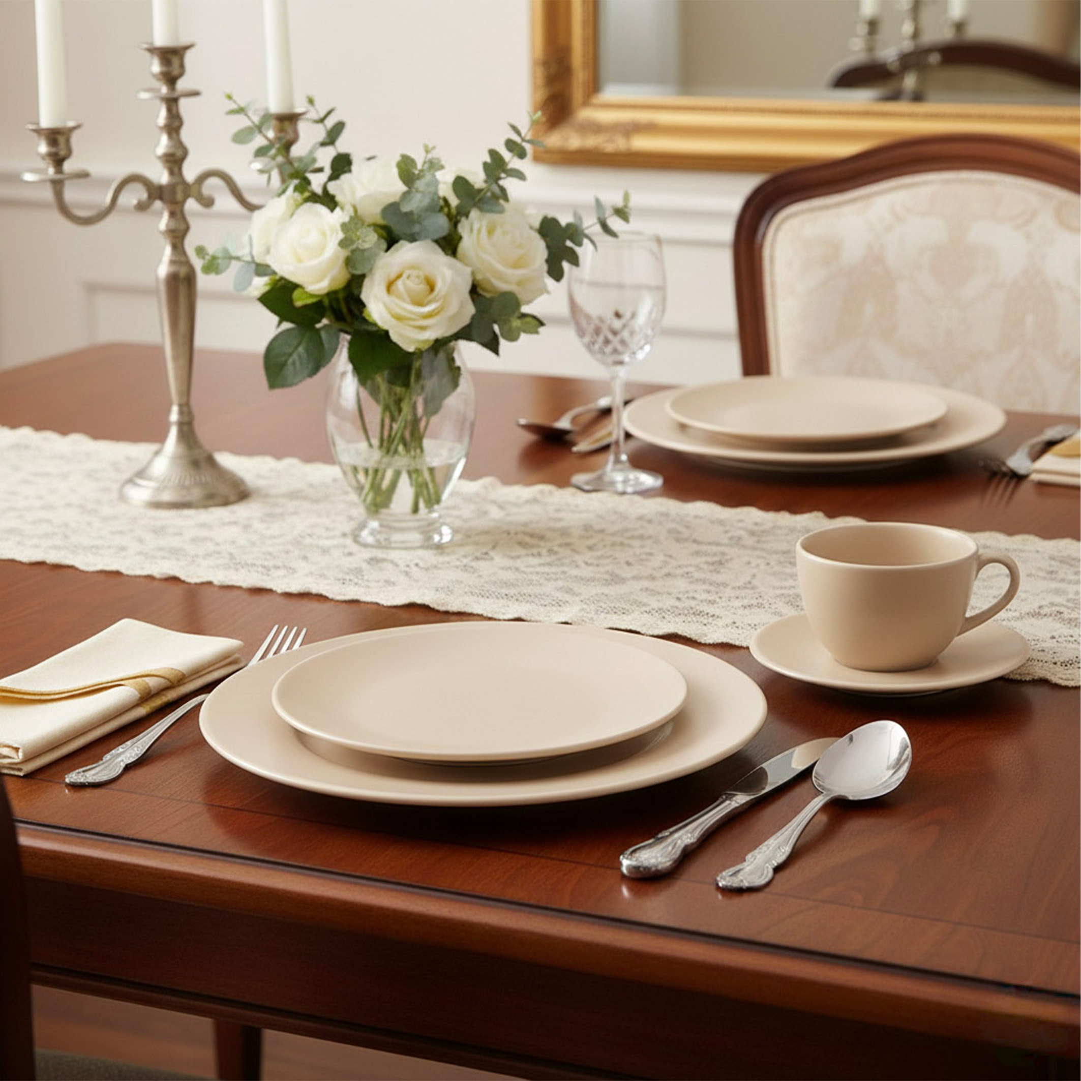 INCLUYE: 4 PLATOS PLAYOS 26 CM, 4 PLATOS HONDOS 20.5 CM, 4 PLATOS POSTRE 19 CM Y 4 TAZAS DE TE 200 CC CON PLATO