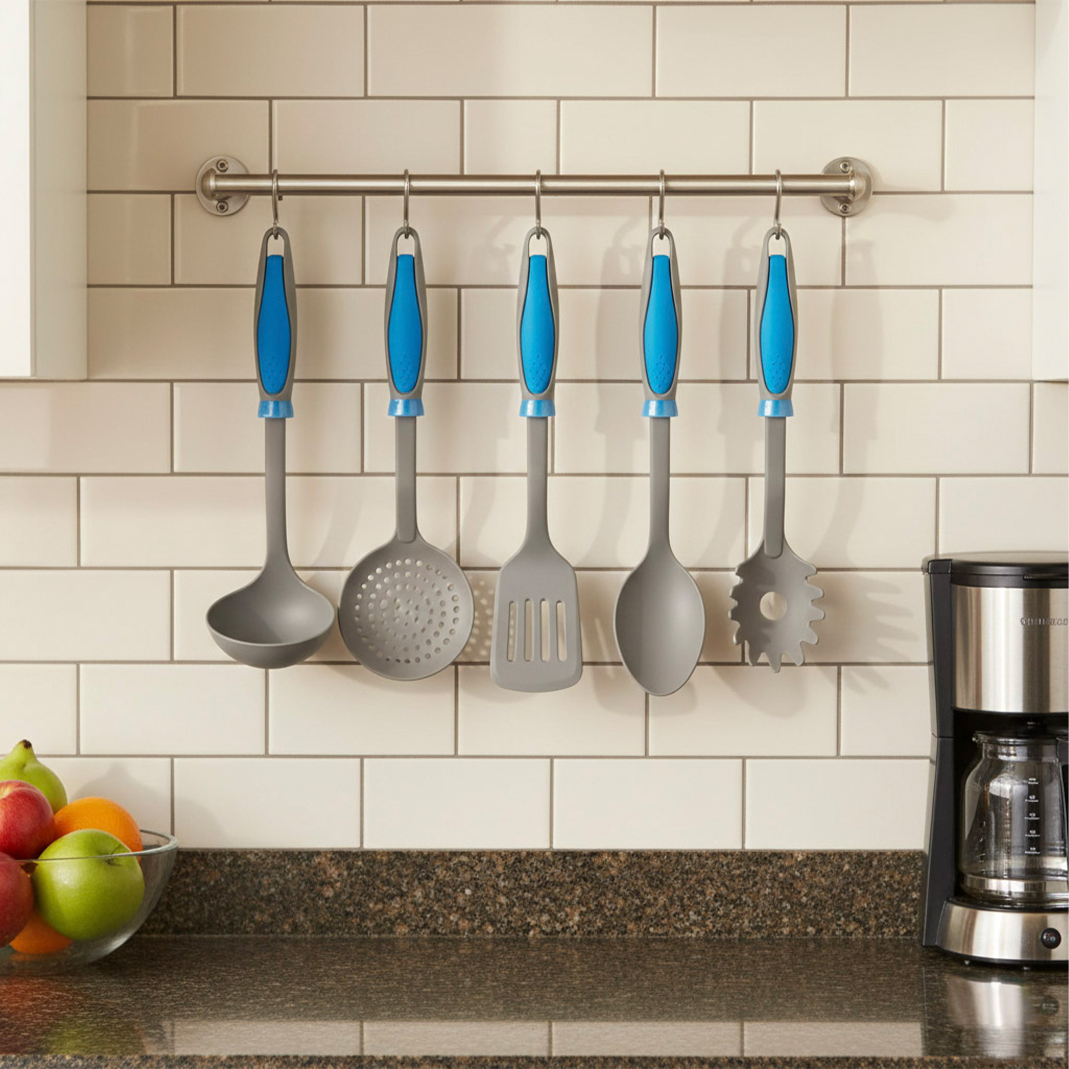 CUCHARA PARA LEGUMBRES NYLON GRIS CON MANGO AZUL PARA ANTIADHERENTE