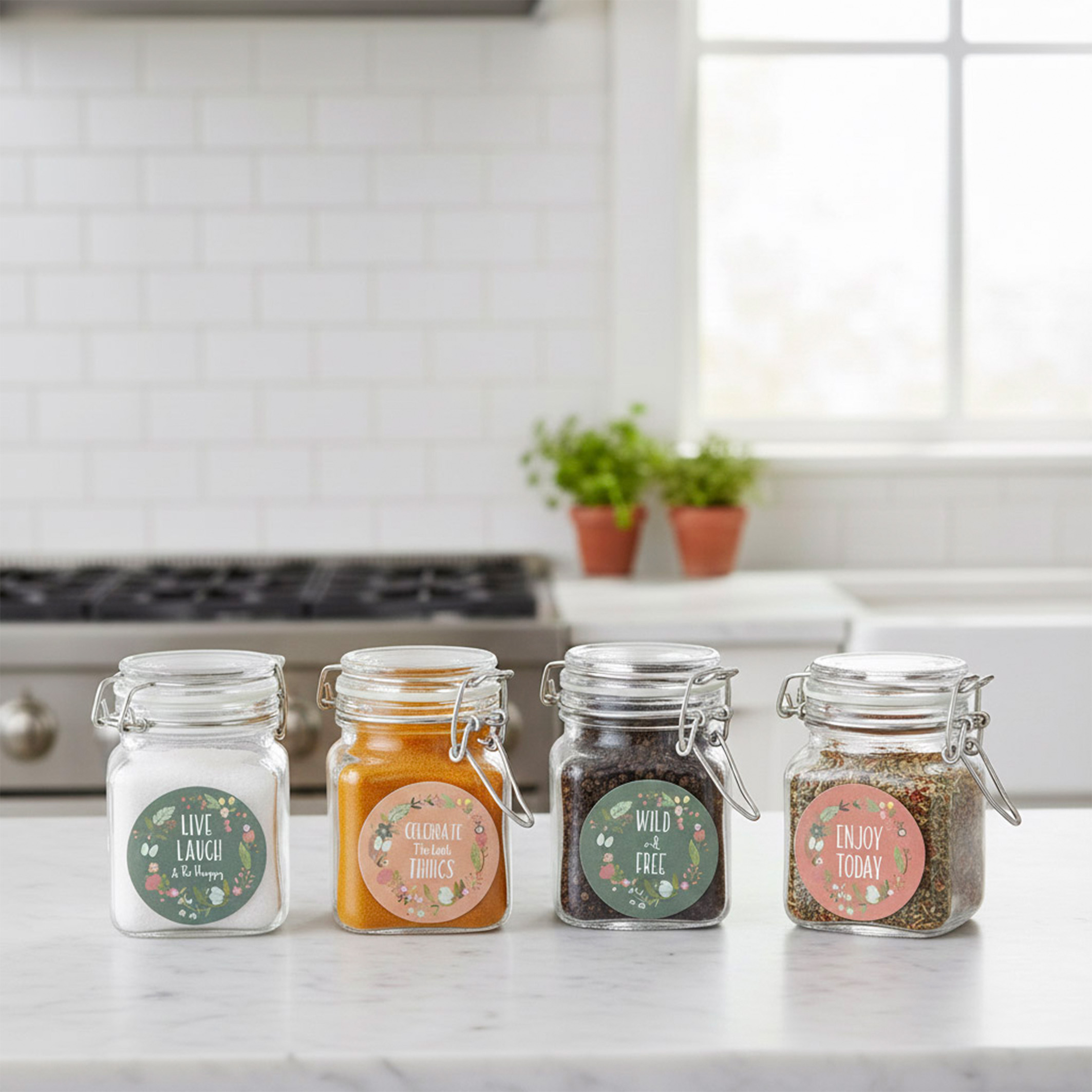 Nouvelle Cuisine Set Especieros x 4 Frascos de Vidrio Cuadrados con Cierre Hermetico Caja