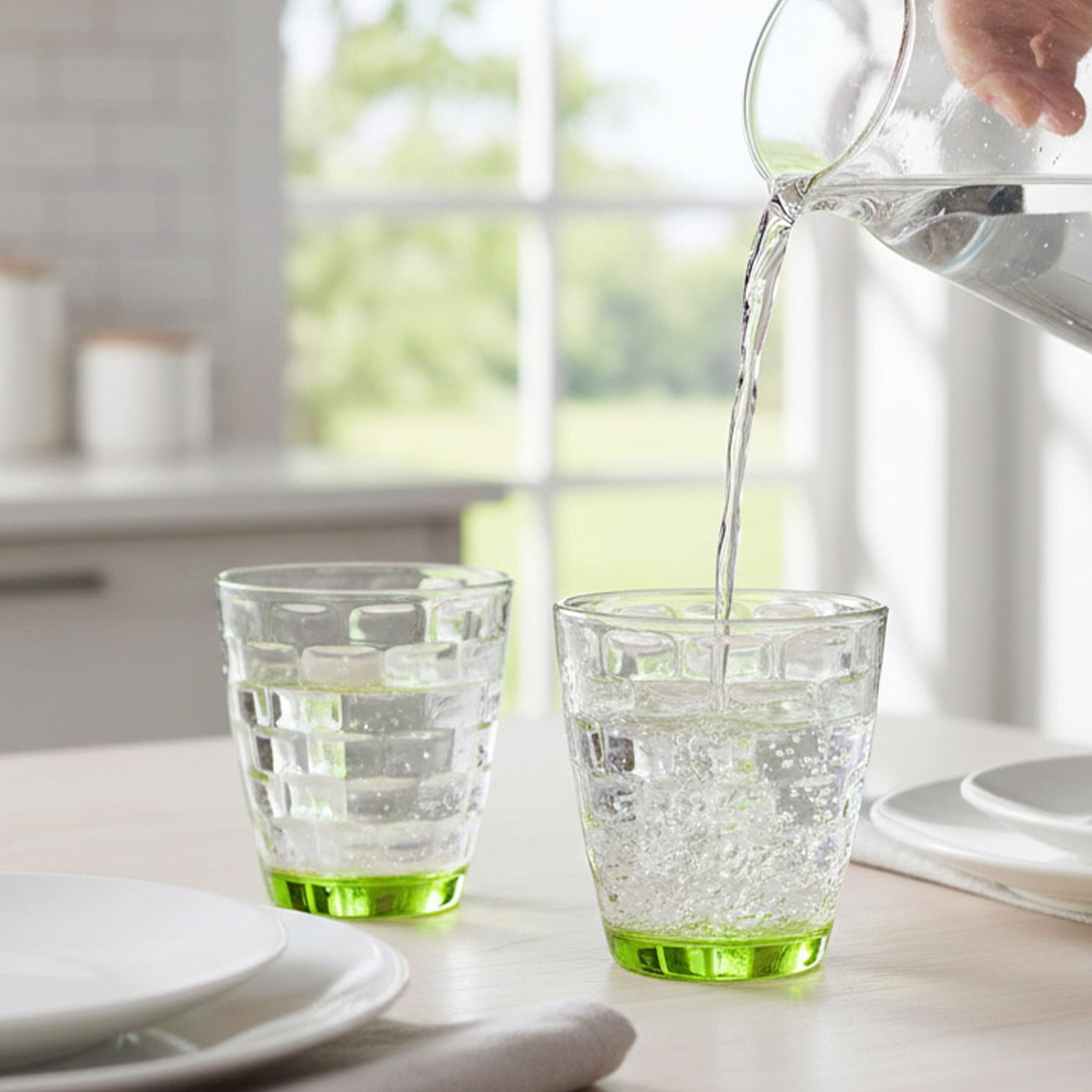 SET X 6 VASOS DE AGUA 270 CC CON BASE VERDE